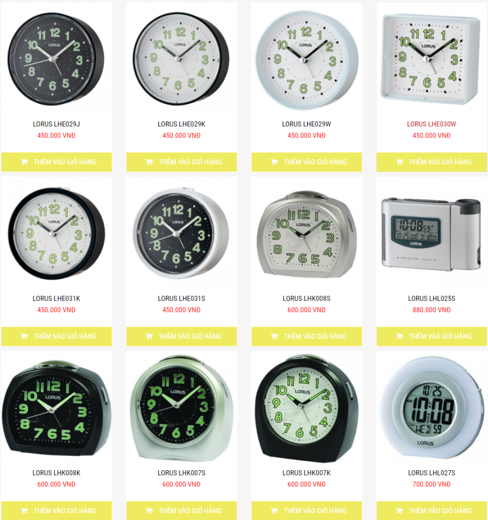 Tại Việt Nam, chúng ta có thể dễ dàng tìm thấy các sản phẩm đồng hồ để bàn Lorus cũng như đồng hồ treo tường Lorus. Sau đây, Đồng hồ Minh Tường sẽ giới thiệu một số mẫu đồng hồ bán chạy nhất: