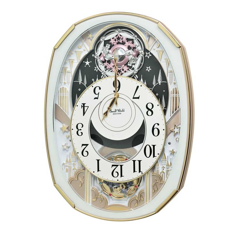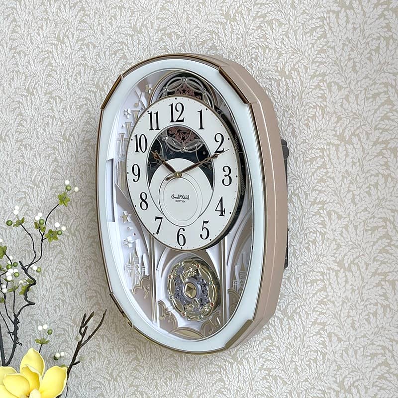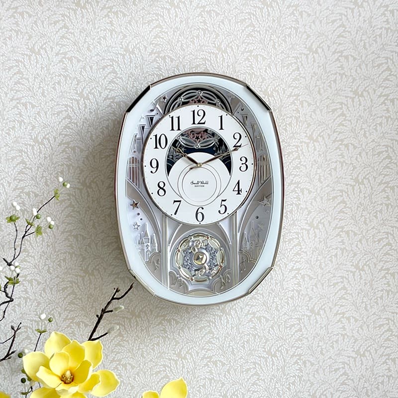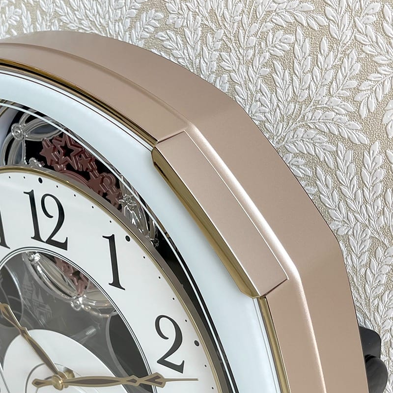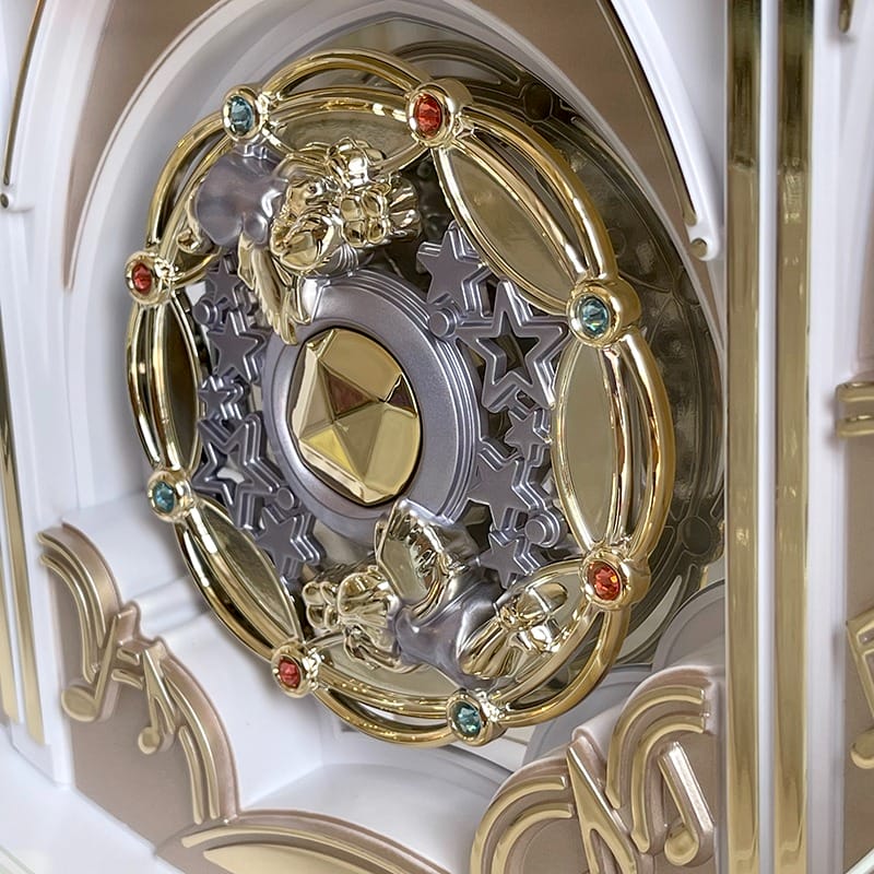 – Mỗi giờ, đồng hồ dạo nhạc và mặt số đồng hồ chuyển động xoay xuống phía dưới để lộ ra các bánh xe đính pha lê Swarovski xoay tròn quanh trục theo tiếng nhạc.