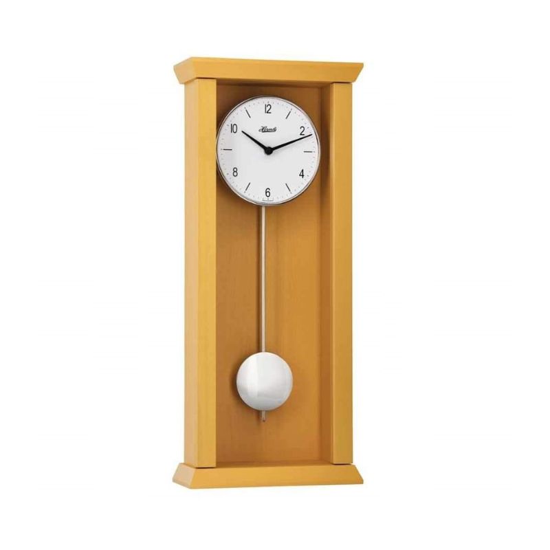 – Mặt trước đồng hồ có lớp kính bảo vệ mặt số và quả lắc bên trong.