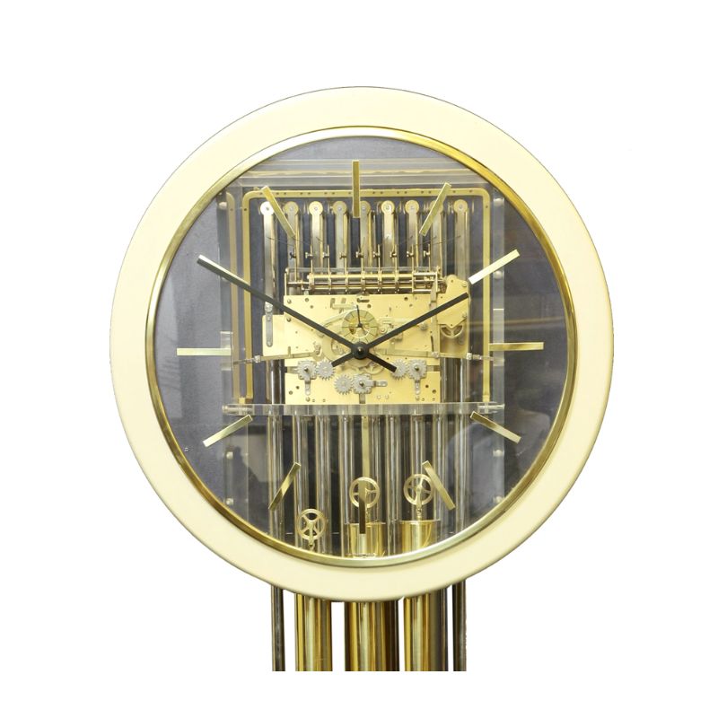 HOWARD MILLER 622-779 được mệnh danh như một “cỗ máy thời gian” đến từ thương hiệu Howard Miller của Mỹ. Nói như vậy bởi khi chiêm ngưỡng HOWARD MILLER 622-779, bạn chắc chắn sẽ có cảm nhận như đang ngắm nhìn một nhà máy với các “nhân viên” cần mẫn vận hành theo guồng quay bất tận của thời gian. Tất cả các chuyển động đó có thể được dễ dàng quan sát bởi HOWARD MILLER 622-779 có mặt kính trong giúp bạn có thể dễ dàng nhìn ngắm các chi tiết máy đồng thau bên trong hoạt động. HOWARD MILLER 622-779 cũng có vòng bezel hoàn thiện bằng đồng đánh bóng và một vòng màu trắng có đường kính 26 inch làm nổi bật toàn bộ mặt số.