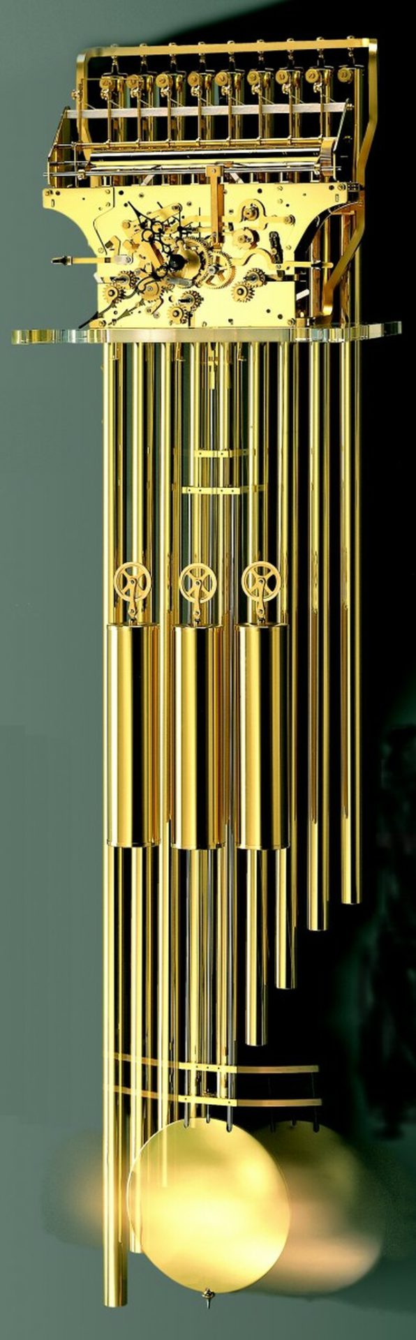 – Đồng hồ đánh nhạc bằng 9 búa và 9 ống sáo đồng.