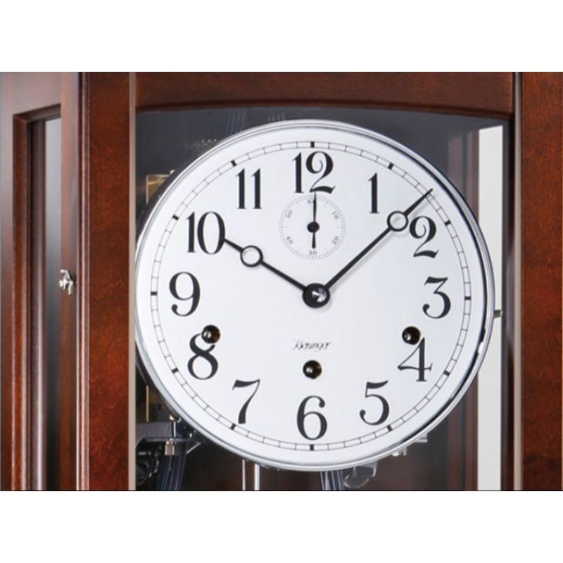 Đây là một mẫu đồng hồ treo tường tuyệt đẹp với tông màu trầm từ gỗ óc chó có độ bền cao. Đây là loại gỗ thường được sản xuất các loại sản phẩm cao cấp trong đó có đồng hồ. Mặt số đồng hồ cong được tráng men, chính vì thế nó luôn tỏa sáng long lanh ở mọi góc nhìn. Các số chỉ giờ được ghi bằng số Ả Rập có kích thước cân đối. Đặc biệt, quả lắc của sản phẩm có trắng bạc, nổi bật khi nhìn từ phía trước và dễ tạo được ấn tượng đối với người xem. Kieninger 2174-22-02 chạy bằng sức nặng của hai quả tạ được thiết kế cân đối.