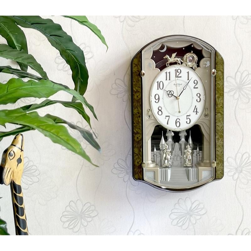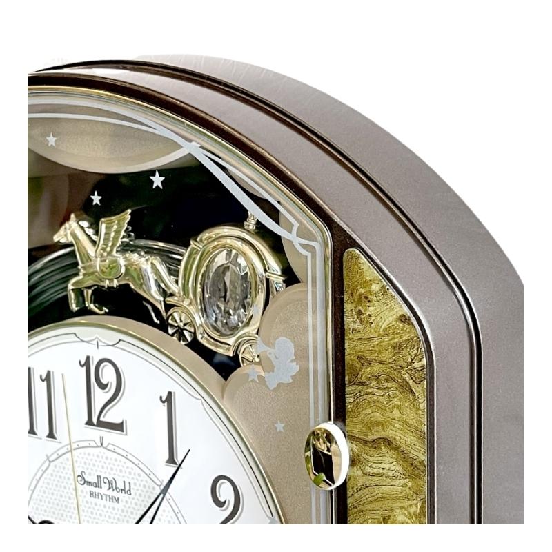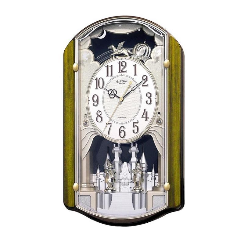 – Quả lắc hình cỗ xe ngựa và cầu vồng sẽ lắc qua lại khi đồng hồ chạy.