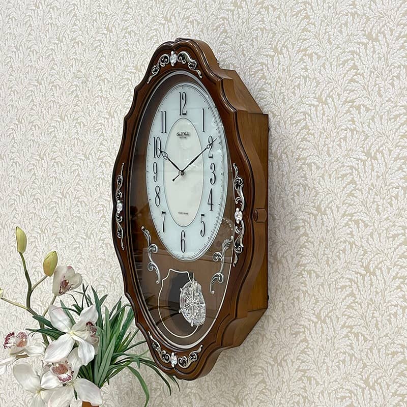– Quả lắc đồng hồ gắn 6 viên đá pha lê Swarovski.