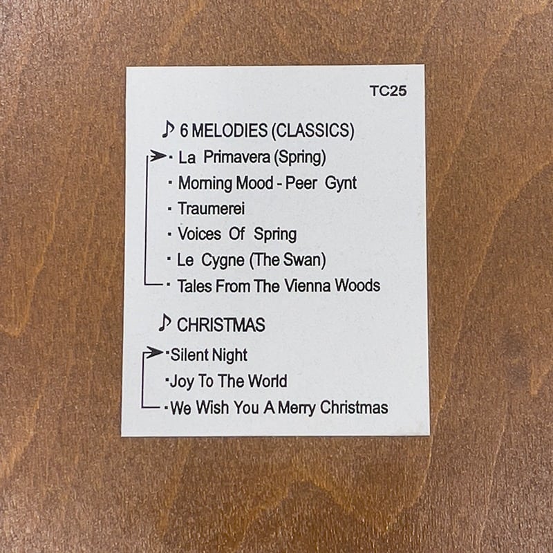 – 6 Melodies: 6 giai điệu cổ điển, 1 tiếng đánh 1 lần và mỗi giờ 1 bài khác nhau.