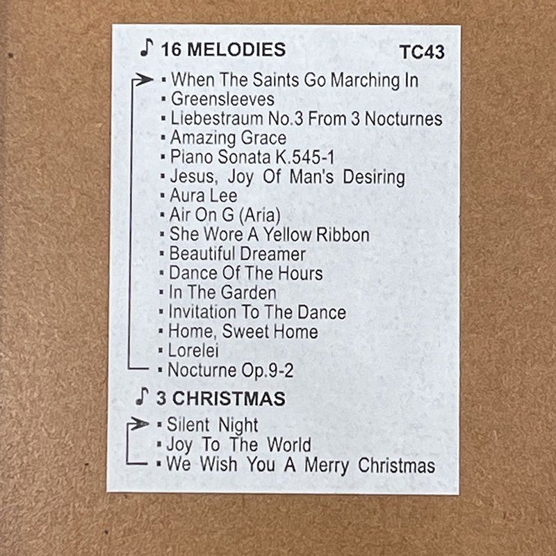 – 16 Melodies: 16 giai điệu cổ điển, 1 tiếng đánh 1 lần và mỗi giờ 1 bài khác nhau.