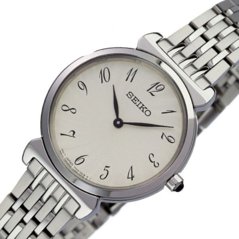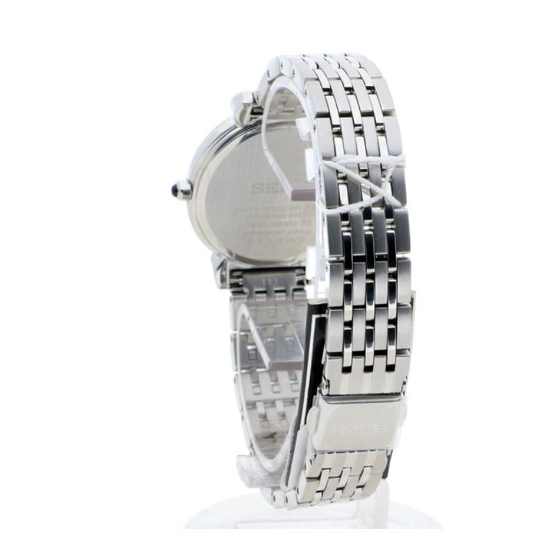 Trang chủ / Đồng hồ đeo tay / Nữ / Seiko SFQ801P1 – Nữ – 29,6mm – Kính cứng – Quartz (Pin) – Dây kim loại